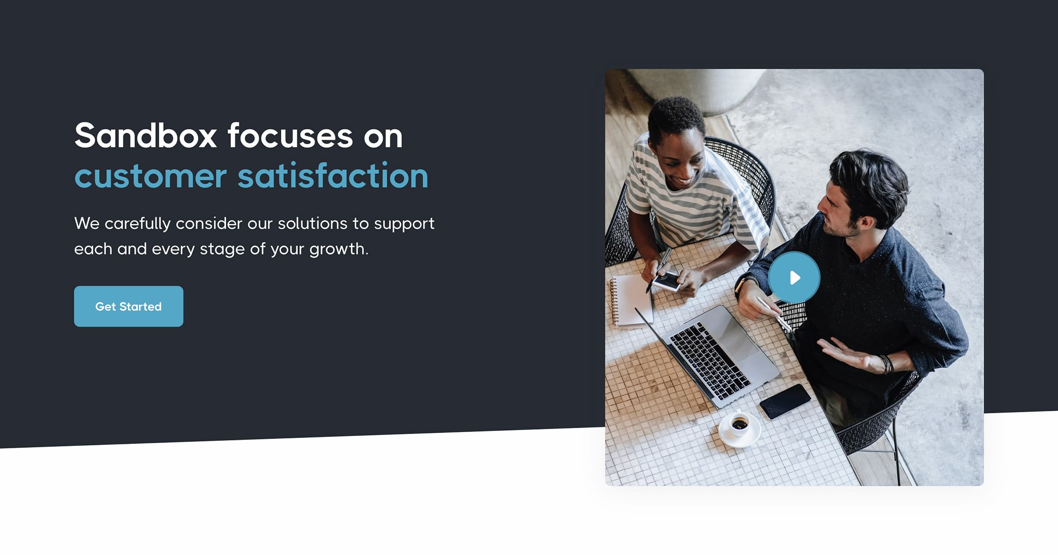 <h1 class="display-1 text-white mb-4">Sandbox focuses on <br /><span class="typer text-primary text-nowrap" data-delay="100" data-words="customer satisfaction,business needs,creative ideas"></span><span class="cursor text-primary" data-owner="typer"></span></h1>
