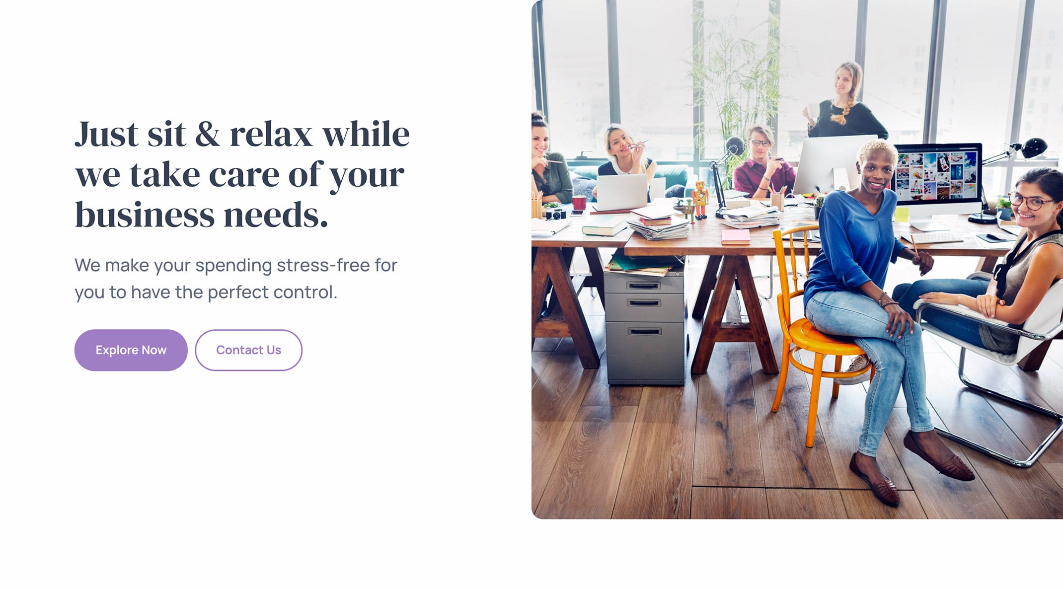 <h1 class="display-1 mb-5">Just sit & relax while we take care of your business needs.</h1>